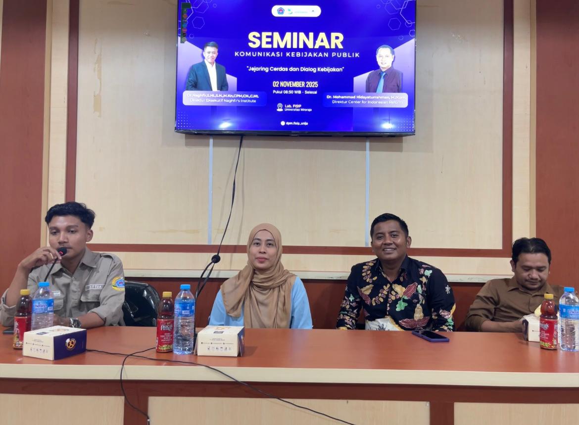 SUMENEP JAGAT INDONESIA – Dewan Perwakilan Mahasiswa Keluarga Mahasiswa (DPM-KM) Fakultas Ilmu Sosial dan Ilmu Politik (FISIP) Universitas Wiraraja sukses menggelar Seminar Komunikasi Kebijakan Publik bertajuk “Jejaring Cerdas dan Dialog Kebijakan.” Acara yang berlangsung di Gedung Lab. Fisip pada Minggu, 02 November 2025, pukul 08.50 WIB ini menegaskan urgensi kolaborasi dan pemanfaatan teknologi untuk efektivitas kebijakan publik.