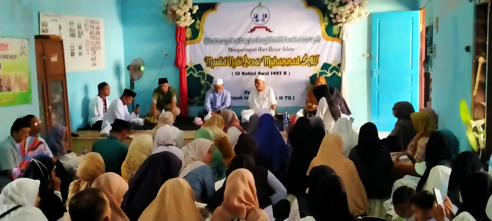 JAGATINDONESIA.COM, SUMENEP – Perkumpulan Penyandang Disabilitas Sumenep (PPDS) menggelar peringatan Maulid Nabi Muhammad SAW 1447 Hijriah di Aula PPDS, bekas gedung RS Sumenep Lama, Jl. Dr. Soetomo, Lingkungan Demala, Pajagalan, Kecamatan Kota Sumenep, Kamis (25/9/2025).