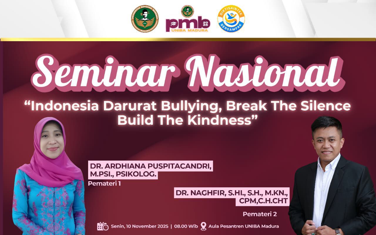 Sumenep, Jagat Indonesia [10 November 2025] – Isu perundungan atau bullying telah mencapai titik darurat di Indonesia. Merespons hal tersebut, Panitia Penerimaan Mahasiswa Baru (PMB) Universitas Bahaudin Mudhary (Uniba) Sumenep mengadakan Seminar Nasional bertema “Indonesia Darurat Bullying, Break The Silence Build The Kindness”. Acara yang digelar pada Senin (10/11/2025) di Aula Pesantren Uniba Sumenep ini menjadi forum penting untuk mengupas tuntas fenomena bullying dari perspektif psikologis dan hukum.