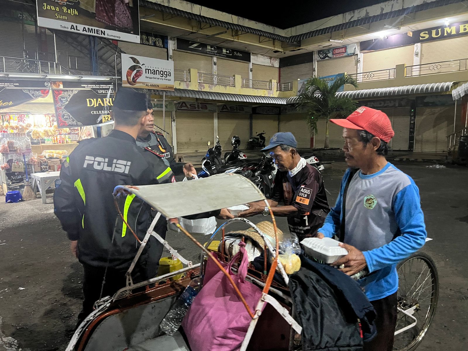 Kegiatan tersebut dipimpin langsung oleh Kasat Lantas Polres Sumenep Beny Kuncoro, S.Tr.K., S.I.K., bersama KBO Satlantas, Kanit Turjagwali, personel Unit Kamsel, serta anggota Unit Turjagwali Satlantas Polres Sumenep. Selain menyapa warga yang masih beraktivitas menjelang waktu sahur, petugas juga membagikan santap sahur kepada masyarakat sekitar.